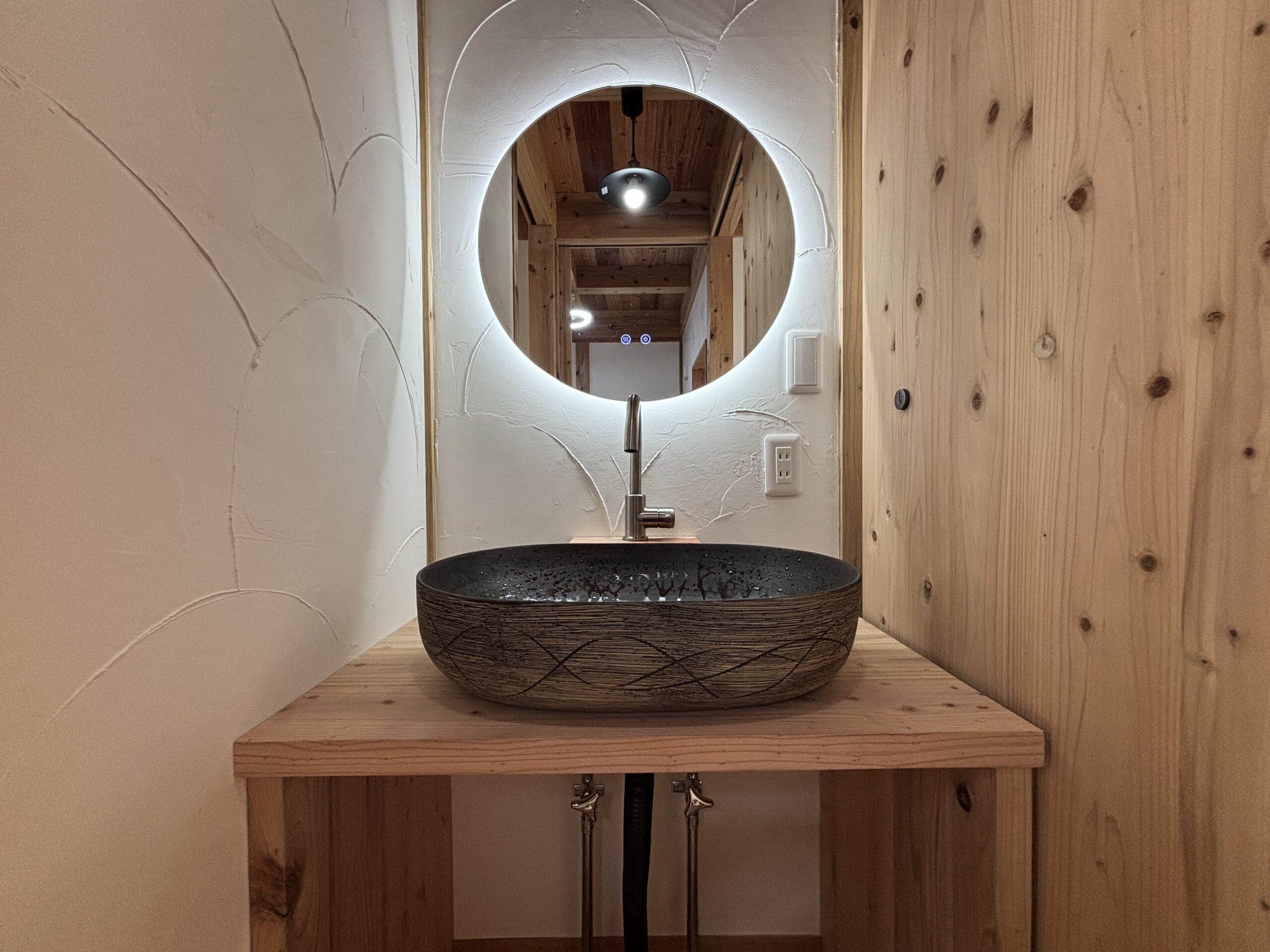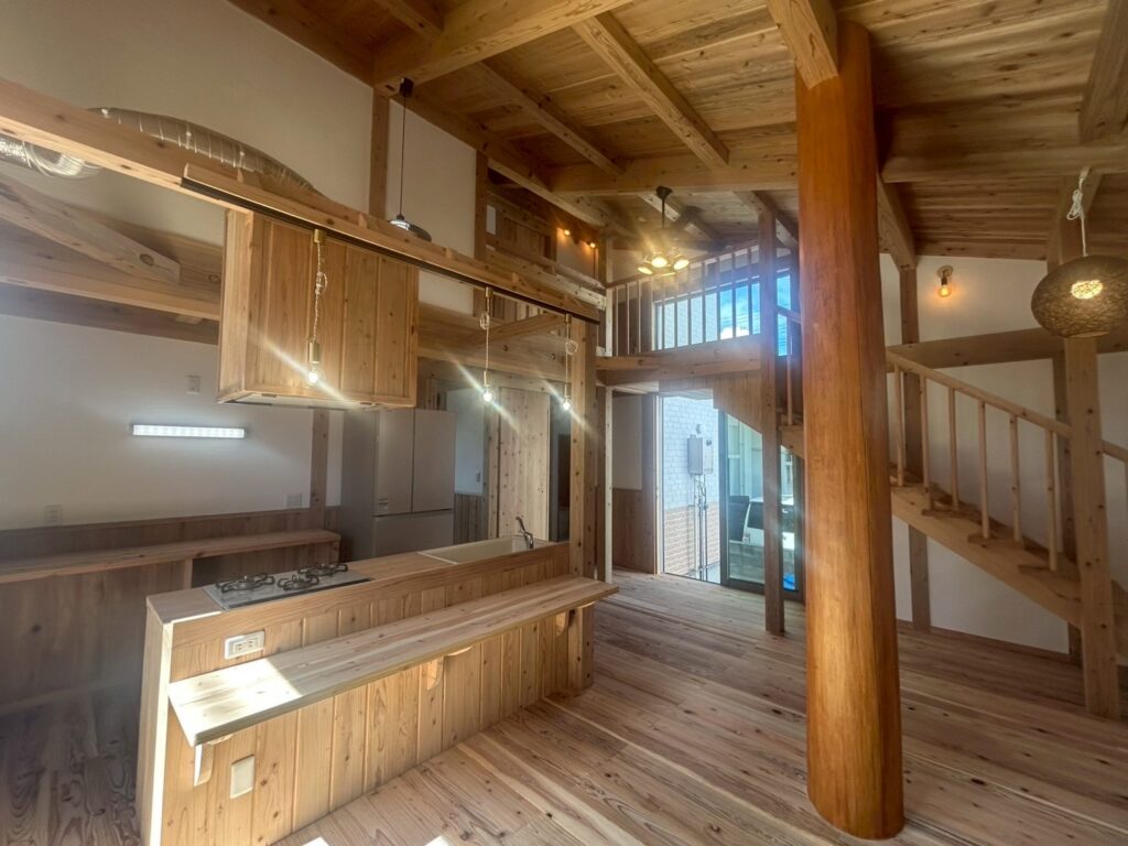「空気がうまい家」はご家族の健康を一番に考え科学建材(新建材)・集成材合板・輸入材ビニールクロスを使わず自然の力を最大限に引き出した「音響熟成木材」と「幻の漆喰」によって生まれました。自然の命が生きているいつまでも心地良い空気環境の住まいでご家族が心も体も健やかにお過ごし頂けます。